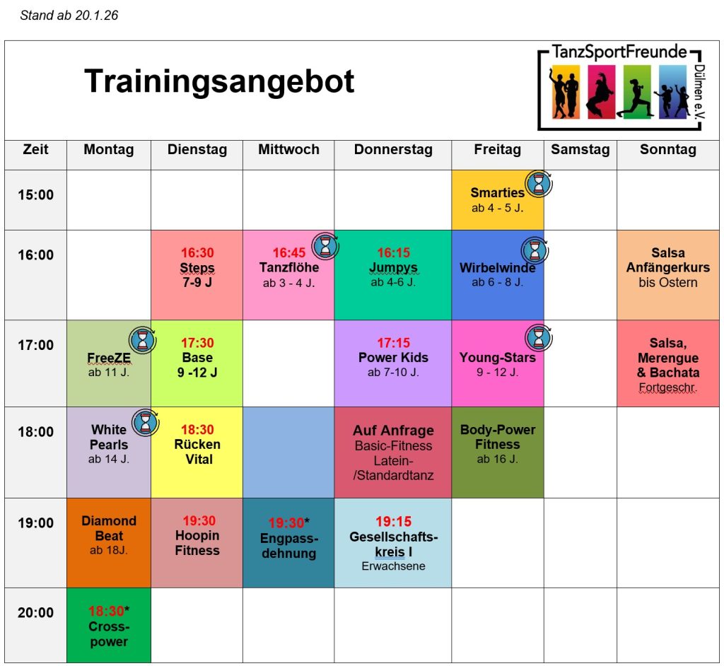 Januar´26 Unsere derzeitigen Trainingsangebote in der Übersicht, mehr Details zu den Angeboten hier.